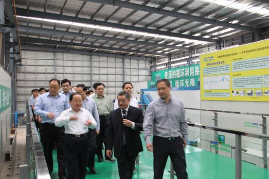 随后鹿省长来到了电子废弃物拆解处理线和塑木型材制造线,现场了解格林美的电子废弃物循环制造技术。许开华教授从破碎、分选到材料再制备等各个流程都一一做了介绍。鹿省长也不时提出一些技术问题与许开华教授进行共同探讨。