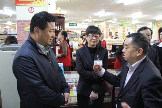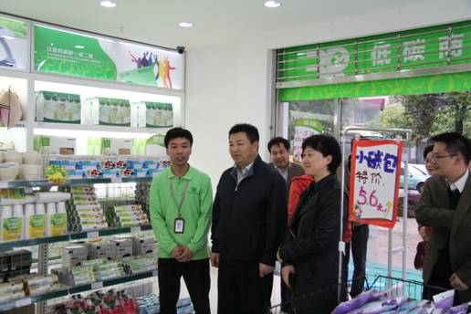图3. 商务部王斌副司长(左二)参观格林美3R循环消费社区连锁超市南湖店