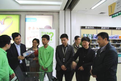 图5. 商务部王斌副司长(右一)参观苏宁电器格林美3R循环消费服务区