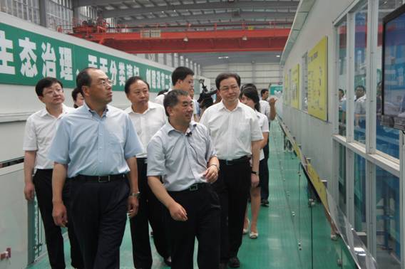 ??? 2012年7月19日上午,省委常委、武汉市委书记、市人大常委会主任阮成发率市委常委、常务副市长贾耀斌,市委常委、市组织部长胡志强,市委常委、市委秘书长龙正才,市政协副主席、市国土资源和规划局局长张文彤及市发改委、市财政局、市农业局、市委政研室、市委督查室、市经信委等部门主要负责同志,在新洲区王世益书记、余世平区长等领导的陪同下莅临格林美武汉循环产业园,调研格林美城市矿产资源产业发展情况。董事长许开华教授和常务副总王敏女士进行了热情接待和详细汇报,并陪同参观了视频监控系统、展厅、电子废弃物拆解分厂和塑木分厂。