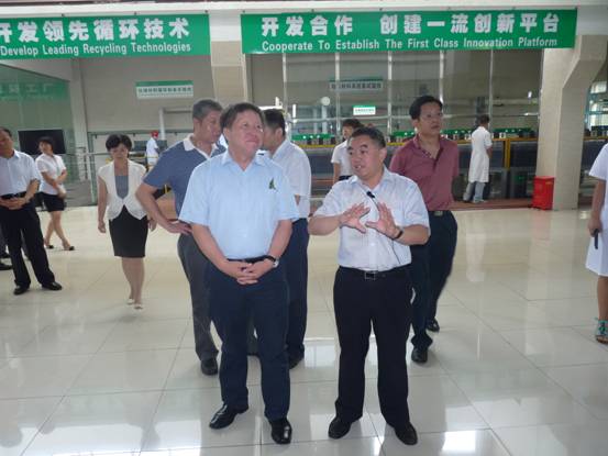????? 2012年8月18日上午,国家科技部副部长曹健林在湖北省科技厅厅长刘传铁、荆门市委书记王玲、市长万勇等陪同下考察了荆门格林美城市矿产资源循环产业园,许开华董事长陪同曹部长一行参观了荆门格林美循环展厅、分析检测中心、技术研发中心和电子废弃物拆解车间,参观过程中,许董事长向曹部长介绍了格林美通过科技创新快速实现科技成果产业化的情况,并对科技部门对格林美科技创新工作的支持表示感谢,曹部长对格林美在城市矿产资源循环产业创新创业的成就表示高度肯定,并鼓励格林美继续通过科技创新做大做强低碳循环产业。