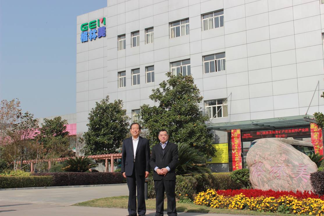 图六 许开华董事长(右一)与刘长顺主任(左一)在格林美城市矿产循环产业园合影留念
