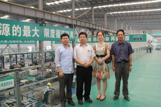 图三:郭启民处长(左二)在格林美电子废弃物拆解现场留影纪念