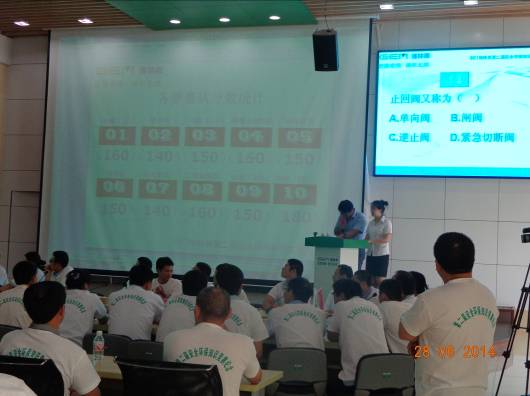 竞赛一共分必答题“齐头并进”、抢答题“你追我赶”、风险题“挑战自我”三个环节。本次参赛队伍一共有10队,全部来自于生产事业部和辅助部门一线员工,是我们格林美公司打响打胜安全与环保战役的主力军。在竞赛前,他们全面准备、充满自信,在竞赛中,他们冷静思考、沉着应对,完全展现出了我们格林美人的风采。在各环节之余,主持人还精心准备了现场互动提问环节,只要能回答主持人提出的问题都能获得纪念奖品一份,员工的求知欲和奖品的诱惑力无疑将现场紧张的气氛瞬间调和的轻松与和谐。经过精彩的角逐,最后工程能源队几乎以全对的成绩荣获第一名的好成绩,为本次竞赛画上了完美的句号。