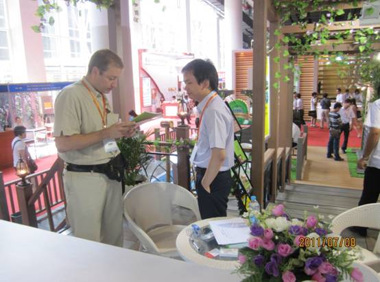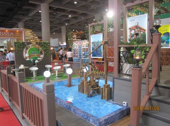 在本次建博会上,深圳市格林美高新技术股份有限公司以格林美塑木产品为主体搭建了72平米的特装展位(展位号:12.2馆030),综合运用塑木铺板、墙板、花架、栅栏、花箱等多种产品,再现了以塑木为核心元素的高档户外园林景观。别致优美的展会场景及公司塑木产品优良的品质吸引了众多海内外采购商前来交流与洽谈,为公司的塑木产品起到了良好的宣传效果,极大的提高了格林美塑木的品牌知名度与影响力。