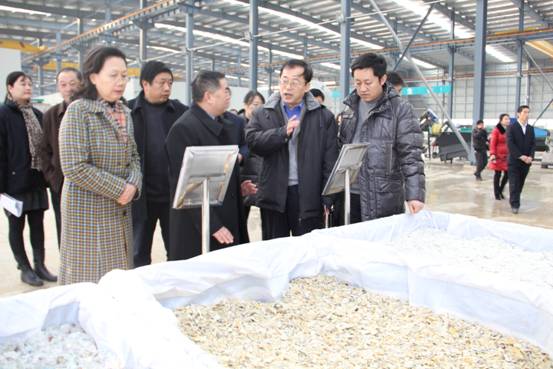 张蜀东(右二)、江西省商务厅副厅长李青华(左一)等在查看公司的拆解产物