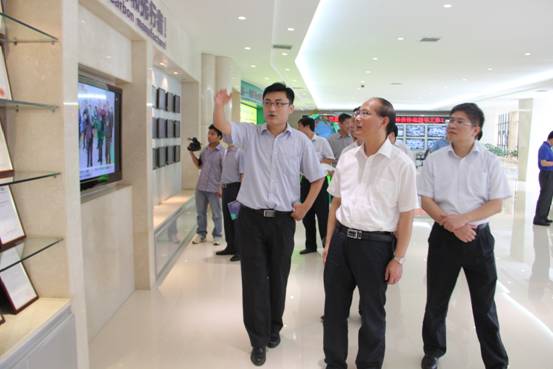 图1. 吴主任(居中)在查看格林美信息监控中心