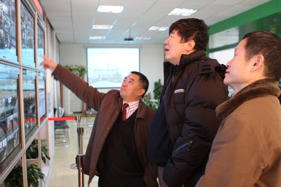 图二 许开华董事长向李新民巡视员介绍格林美各分、子公司的生产监控图并展示格林美完备的信息化建设情况