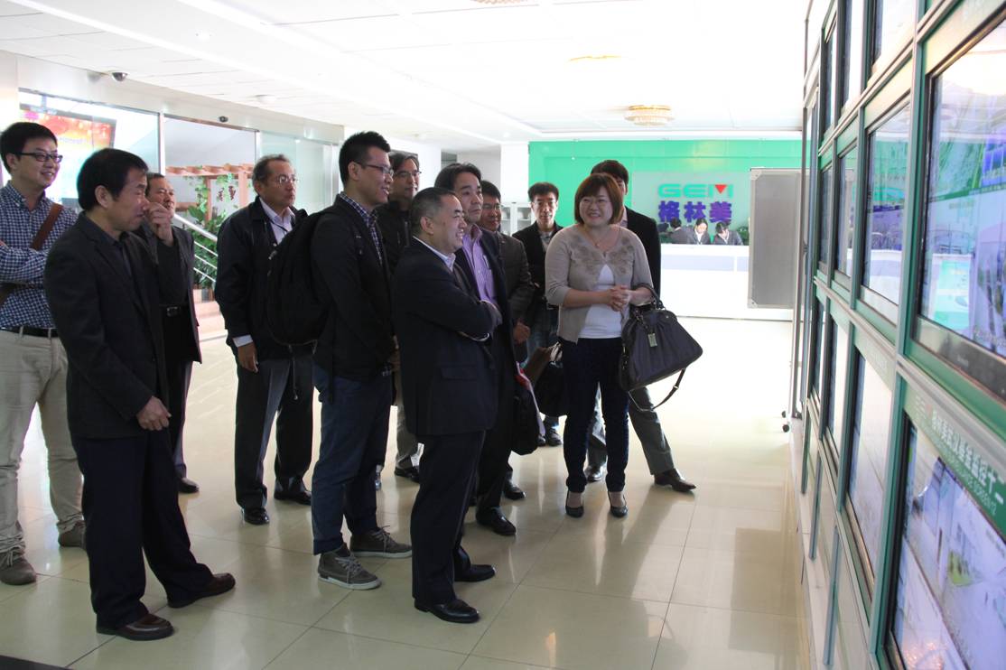 图3:许开华董事长(右一)与永塚社长(左三)一行观看习主席参观视频