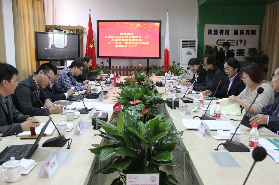 ??????? 2013年10月31日上午,日本Honest公司永塚社长及三井团队一行莅临格林美武汉城市矿产循环产业园参观考察,许开华董事长带领公司相关领导热情接待了永塚社长一行。公司常务副总焦华陪同永塚社长一行先后参观了循环经济展厅、电子废弃物拆解线、塑木生产车间,而后许开华董事长与永塚社长一行在会议室座谈,并前往报废汽车施工现场视察。