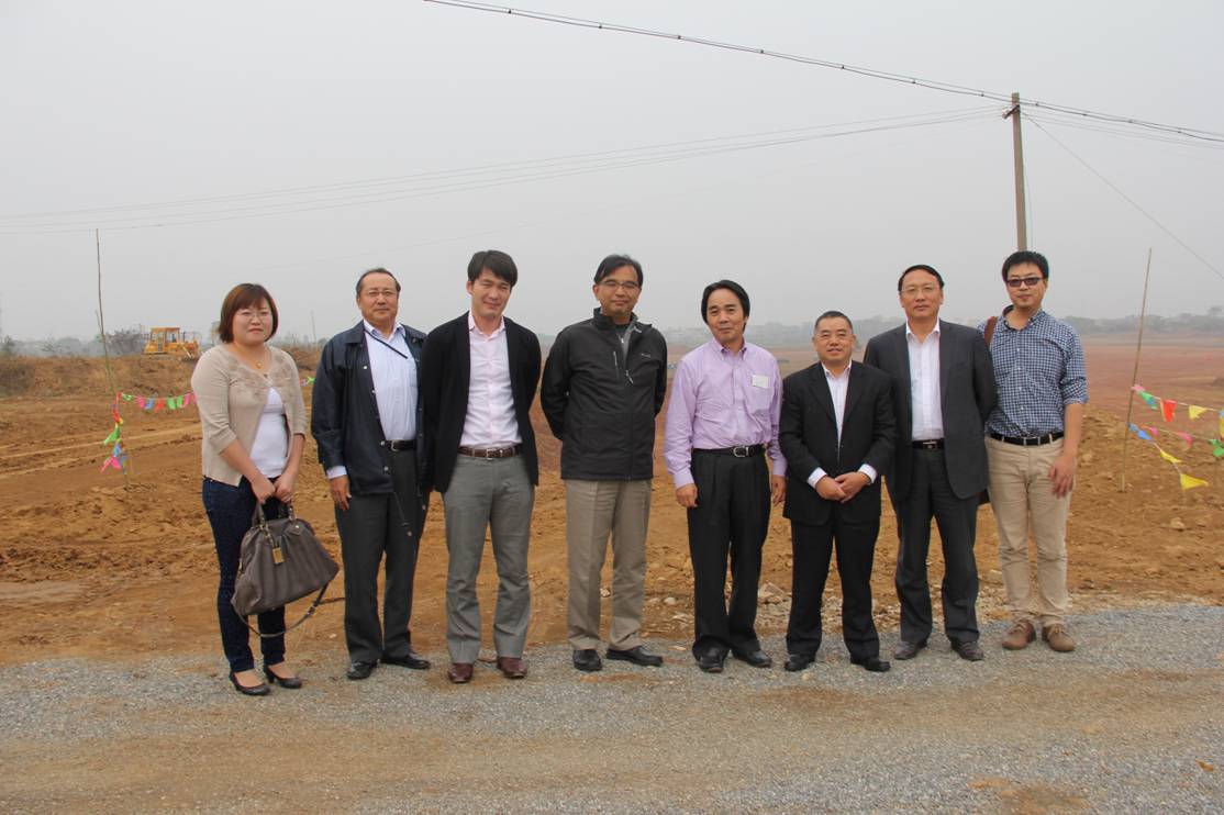 图5:许开华董事长(右三)带领永塚社长(右四)一行参观报废汽车循环利用项目施工现场