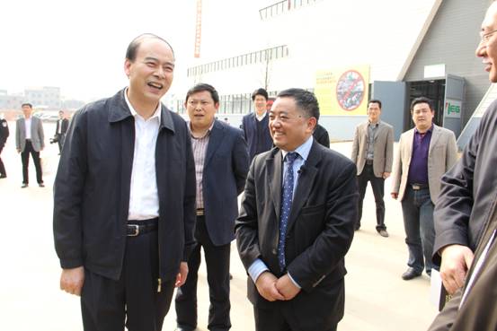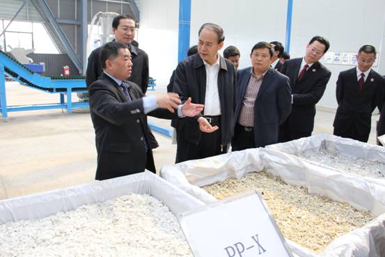 图四 曾页九检察长对含有公司塑木型材的厂房十分感兴趣