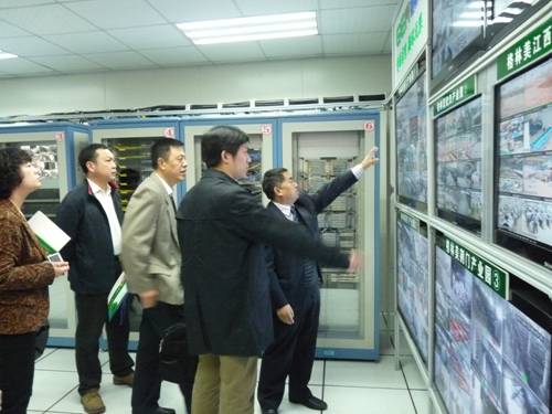 中国电池工业协会副秘书长曹国庆(左一)参观电子废弃物处理分厂