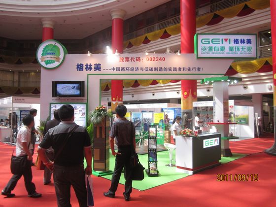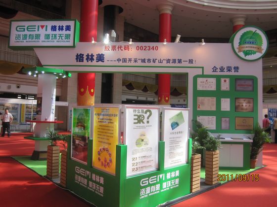 我公司为本次展会唯一特装展位(展位号:A070),共展出了电子废弃物拆解产品、塑木型材及钴粉、镍粉等系列资源再生产品。图文展示了格林美公司宣传片及电子废弃物零排放拆解工艺。别致优美的展会场景和公司优良品质的产品受到了来自国内外同行的赞许,吸引了众多国内外采购商前来交流与洽谈。本次展会充分展示我公司在资源再生领域所取得的成绩,为公司产品起到了良好的宣传效果,极大的提高了格林美产品品牌知名度和影响力。