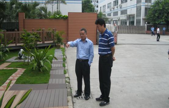 图一 国家发改委环资司牛波处长(右一)在许开华董事长(左一)的陪同下参观格林美低碳生活园