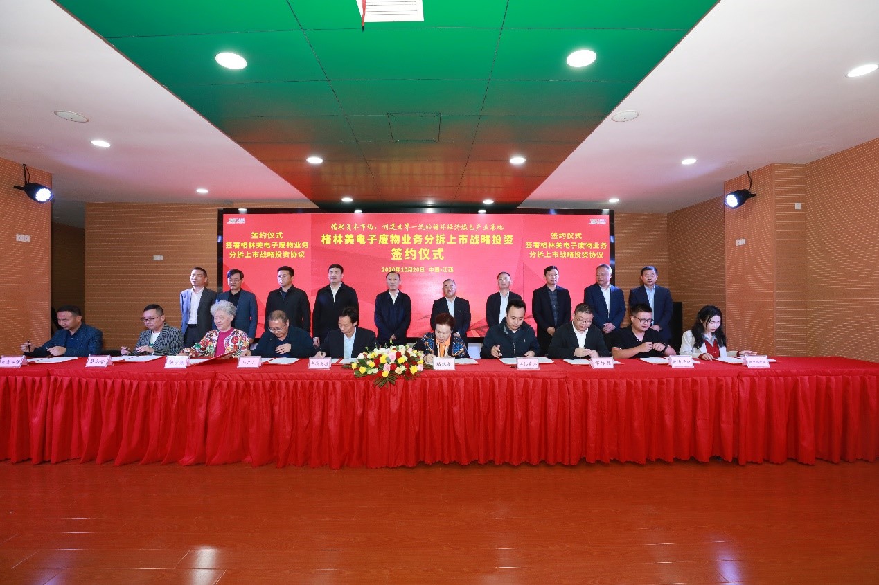 会上,格林美与丰城市政府签署了战略合作协议,并与战略投资者签署格林美电子废物业务分拆上市战略投资协议。