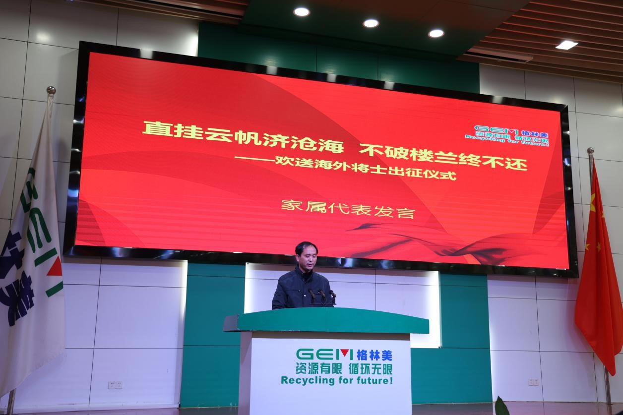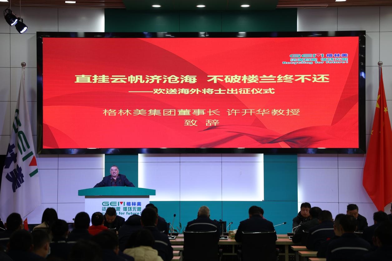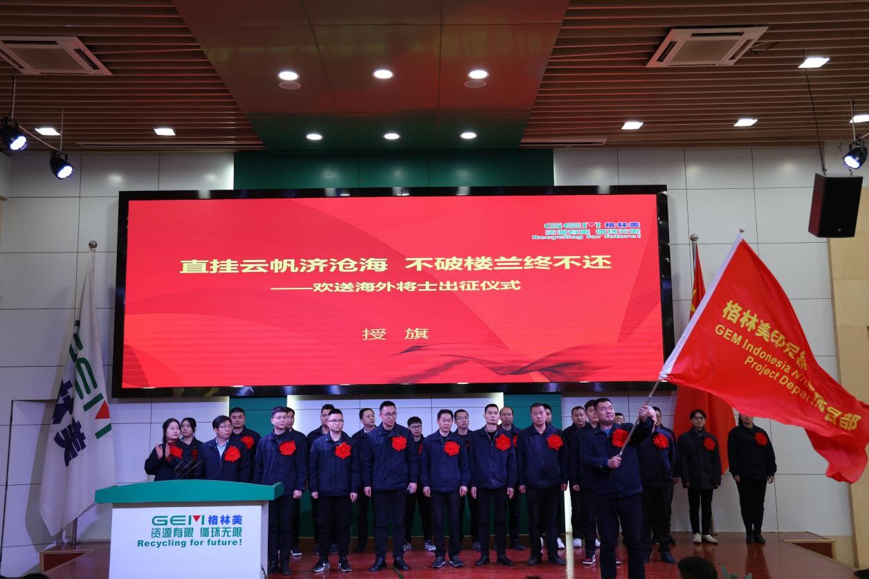 许开华董事长在出征仪式上给大家加油鼓劲,向海外将士们及家属表示衷心的感谢,“我们有冲锋在前的年轻女将士,也有勇担责任的精干男将士,我们要为他们喝彩,更要为将士们的家属点赞,他们是真正的英雄!”许开华董事长表示,出海需要标杆,海外将士要发挥拓荒牛的精神,与行业龙头比拼,向沿海的创业者学习敢于出海的精神,拥抱大海、攻坚克难、犇向目标,把“弄潮儿”的精神大旗高高插在印尼的大地上,打赢印尼镍资源项目建设攻坚战,让格林美出海乘风破浪,争取世界信誉,屹立世界行业前列。