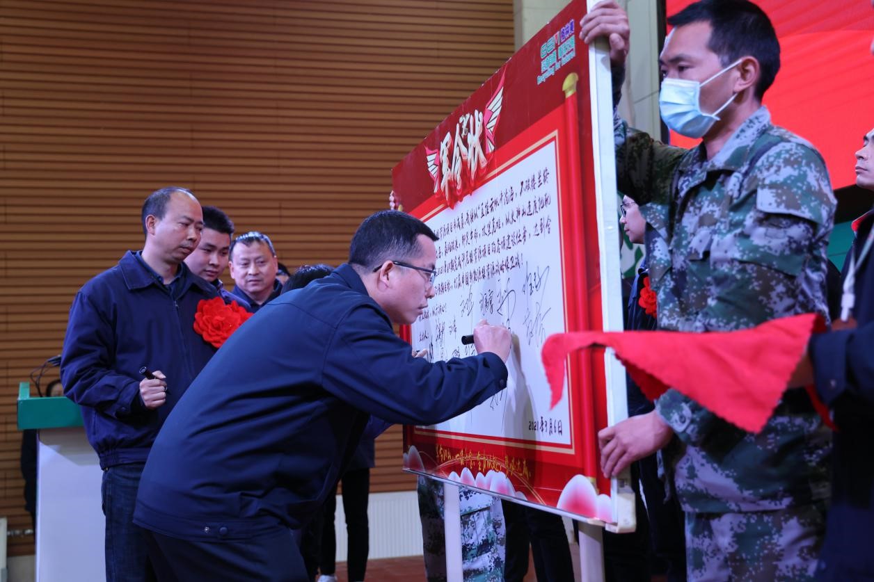 随后,许开华董事长为海外将士授旗。接过旗帜,意味着扛下责任,刘环宇带领全体出海人员签署军令状。31名海外将士信心满满,在全体与会人员的见证下庄严宣誓:“我是格林美印尼镍资源项目部成员。我将以‘直挂云帆济沧海,不破楼兰终不还’的斗志,勇敢出海,乘风破浪,铆足牛劲,攻坚克难,以火神山速度把耽误的时间赶回来,在2021年如期完成印尼镍资源项目的各项建设任务,达到合作股东对项目建设的预期目标,打赢中国新能源镍资源战略保卫战!”