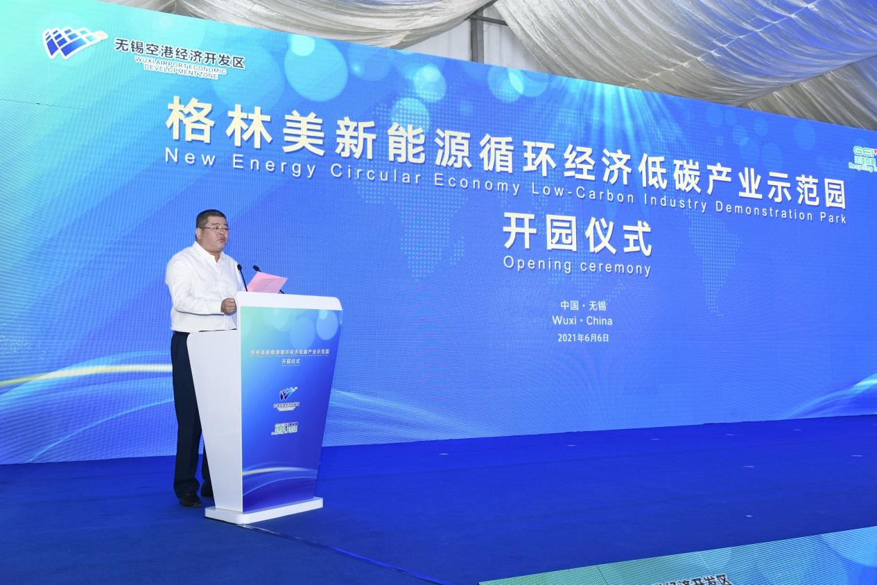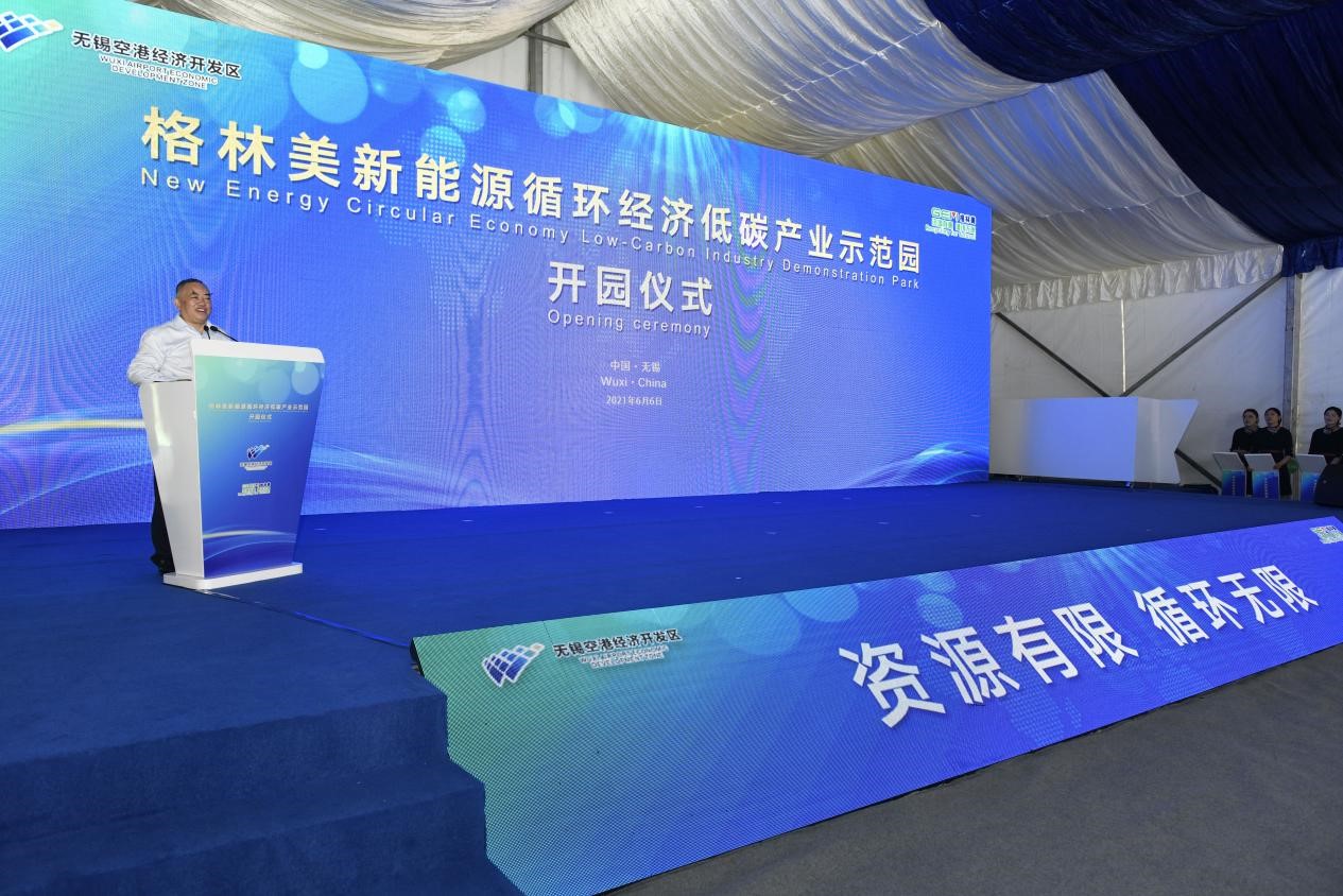 2021年6月6日上午,“格林美新能源循环经济低碳产业示范园”在无锡格林美二期地块隆重举行开园仪式。无锡市委常委、高新区党工委书记、新吴区委书记蒋敏,高新区党工委副书记、管委会主任、新吴区委副书记、区长崔荣国,高新区党工委副书记、管委会副主任、新吴区委副书记洪延炜,区领导章晓明、朱晓红等出席仪式。格林美集团党委书记、董事长许开华教授,集团董事王敏女士参加活动。