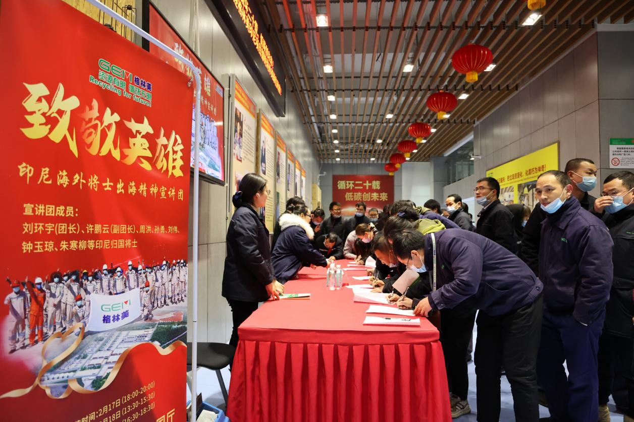 2022年2月17日,虎年奋斗征程已经全面开启。格林美青美邦印尼镍资源项目海外将士归国宣讲团奔赴荆门园区,吹响格林美出海精神宣讲活动第一号。集团监事王健,集团监事候选人吴光源,集团副总经理鲁习金、张坤、王强等在荆门园区主会场出席活动。集团各园区1500余人通过视频“云”参加活动,聆听海外“战斗”故事,领悟开疆拓土的出海精神,致敬英雄,一起向未来!