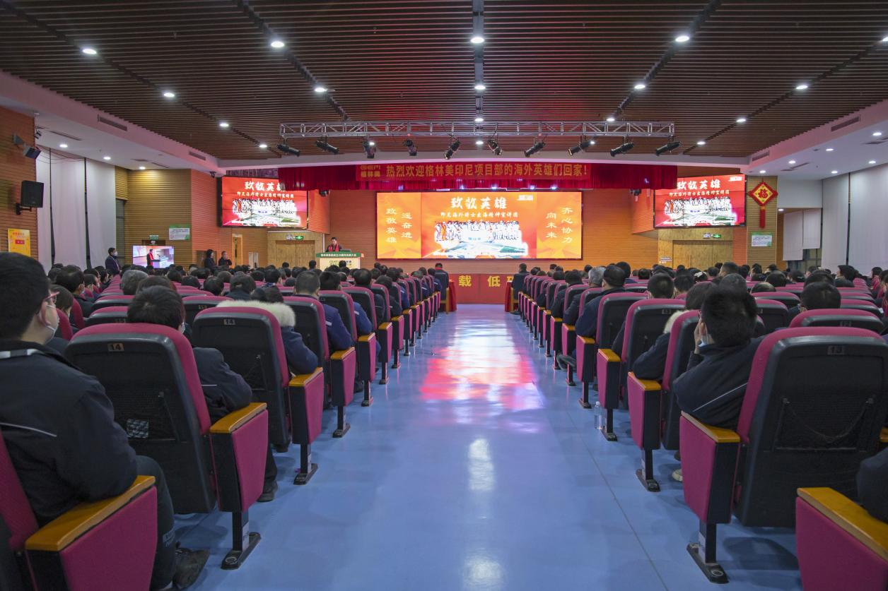 两段从印尼镍资源项目现场传来的VCR,让在场的全体员工直观地感受到海外将士们在印尼的工作与生活情况。归国英雄们以最平凡的语言,讲述着项目顺利推进背后极不平凡的故事。