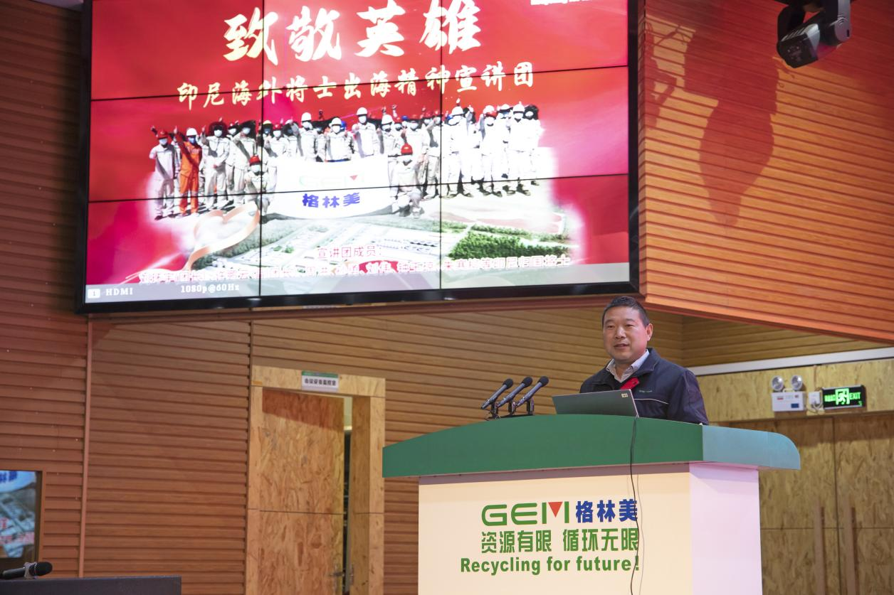 宣讲会最后,集团副总经理鲁习金代表公司向印尼镍资源项目全体建设人员致以崇高的敬意和衷心的感谢,鼓励全体海外将士把艰辛与压力转化为工作的动力,鞭策集团全体员工增强信心、勠力同心,勇做新时代的“劲草真金”,“越是艰险越向前”,做格林美绿色事业的坚定者、奋进者、搏击者!