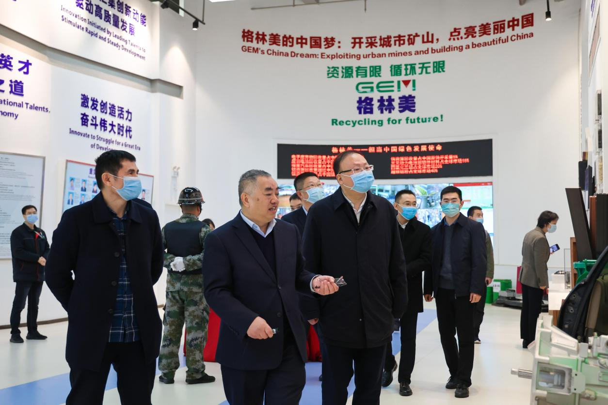 查宏书记一行先后参观了国家“城市矿山”博物馆、电子废弃物绿色处理中心、南区三元前驱体制造中心、安环管理控制中心,并观看了习近平总书记视察格林美武汉电子废弃物绿色处理工厂时的画面。参观过程中,查宏书记对格林美的“废物艺术”表现出浓烈兴趣,对格林美的绿色低碳工厂赞誉有加。