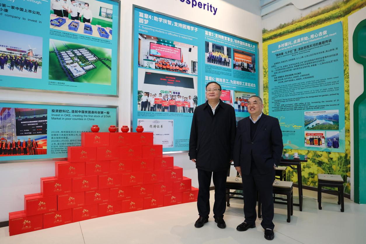 在“城市矿山”博物馆“走共同富裕之路”展厅,许开华董事长邀请查宏书记共同品鉴格林美与郧西县合作的“格林美·七夕红”茶。查宏书记感谢格林美对郧西县的支持,感谢对七夕红的支持!格林美真正变废为宝,造福人类,值得全社会尊重,郧西县一定以最好的服务与投资环境迎接格林美来投资。