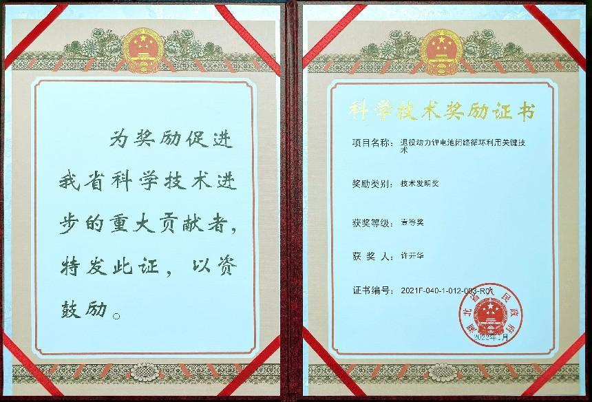 图1 格林美“退役动力锂电池闭路循环利用关键技术项目”荣获“湖北省技术发明奖一等奖”