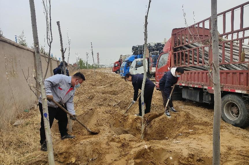 植一抹新绿,播撒一片春光。在格林循环内蒙古园区,大家撸起袖子、挥锹翻土,小心翼翼地将一棵棵树苗植入刚挖好的树坑内,随后培土填埋,以实际行动助力当地生态保护和高质量发展。