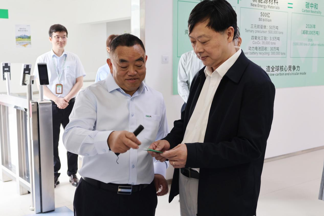 集团副总经理张薇、集团创新驱动办主任杜柯、格林美(深圳)超级绿色技术研究院常务副院长华文超、格林美(深圳)循环科技有限公司总经理谢付乐等陪同参观。