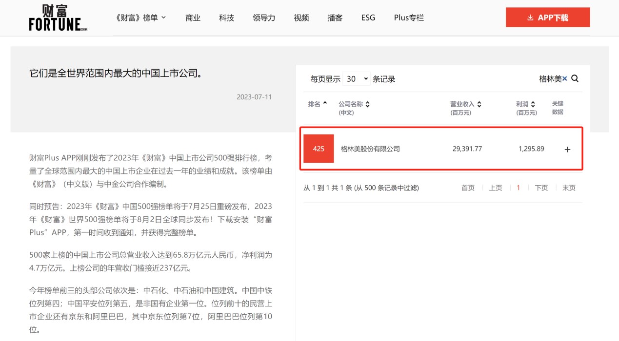 格林美荣登2023年《财富》中国上市公司500强,位列第425位