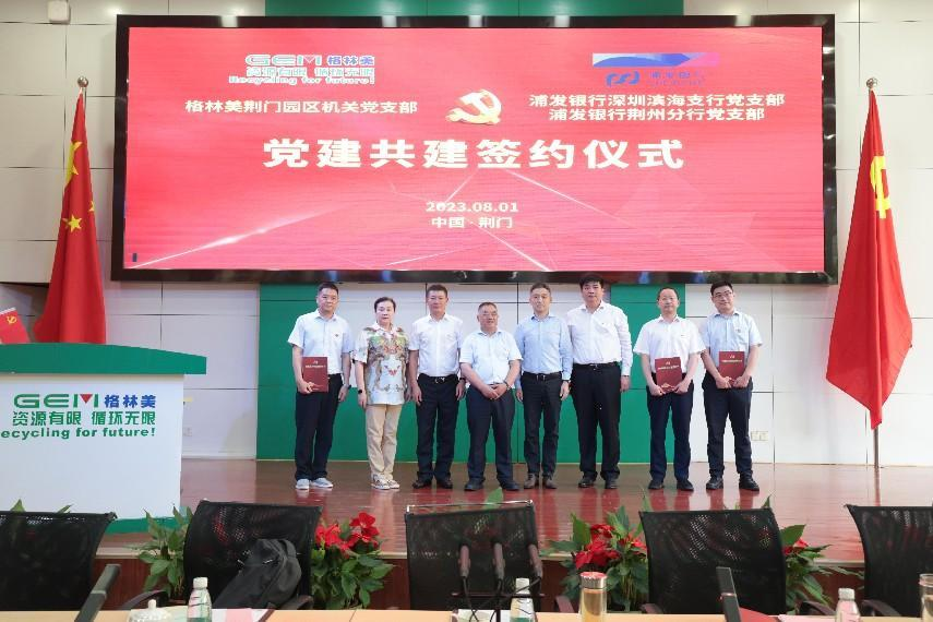 图5 格林美荆门园区机关党支部与浦发银行深圳滨海支行党支部、浦发银行荆州分行党支部举行党建共建签约仪式