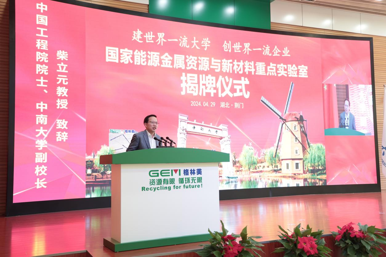 10年前,柴立元院士来到格林美参加国家电子废弃物循环利用工程技术研究中心成立仪式,10年后的今天,再次来到格林美见证国家重点实验室的揭牌,柴立元院士对十年来格林美快速对接国家重大需求,实现从电子废弃物处理到新能源新材料再制造的跨越式发展表示祝贺。“中南大学杰出校友许开华教授创建了一所伟大的企业,在全球产生重大的影响!”柴立元院士用“感动”“自豪”“震撼”表达了此次格林美之行的感受,并用三句话总结格林美在循环经济领域发挥的重要作用。“格林美是践行国家无废城市、无废社会战略的国之大者。”习近平总书记在2013年视察格林美,特别赞誉格林美“把垃圾资源化,化腐朽为神奇”,这充分说明格林美践行国家重大战略,保护国家资源安全战略。“格林美是践行创新驱动战略的典范”。体现在格林美生产、生活、生态“三生”融合的理念创新、文化创新、精细化管理、技术创新等方方面面。从传统、短流程技术到高端、智能化制造,格林美打造了“无人工厂”“灯塔工厂”,正在引领国家创新驱动战略快速前进,引领全球新能源行业的科技发展。“格林美公司是践行‘一带一路’战略的表率”。格林美从荆门走向全国,从中国走向世界,以产业、科技、文化融合发展的模式结伴出海,是践行习近平总书记“一带一路”倡议的重要表率。特别是中南大学、印尼政府、格林美联合开办的冶金工程硕士国际班,对中国的教育走向世界起到了重要的表率作用。最后,柴立元院士祝福格林美在许开华董事长的带领下实现从300亿人民币走向300亿美元的目标。同时,期待中南大学与格林美通过深度合作,促进全方位的产学融通,共同建设世界一流大学,创建世界一流企业,为世界的金属资源能源安全、无废城市低碳战略等作出一流大学和一流企业共同的贡献。