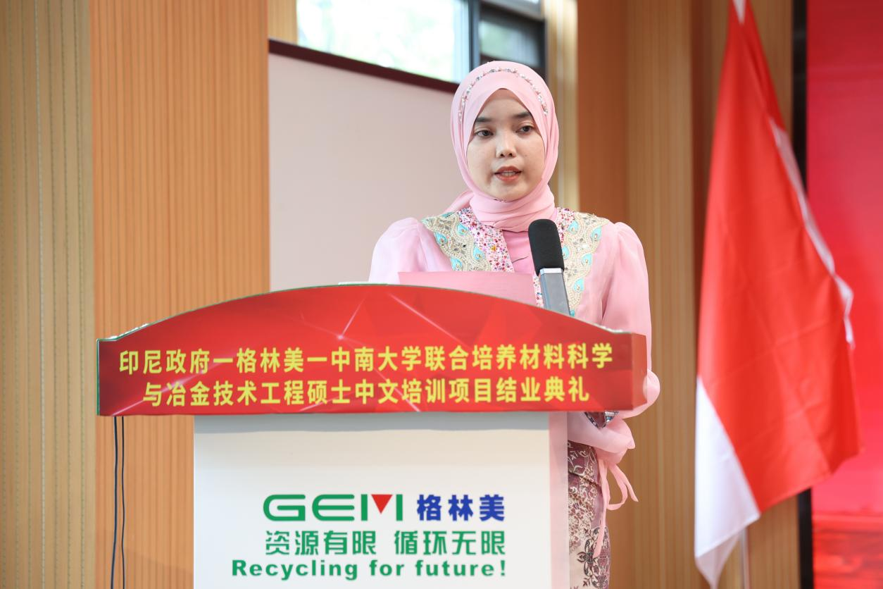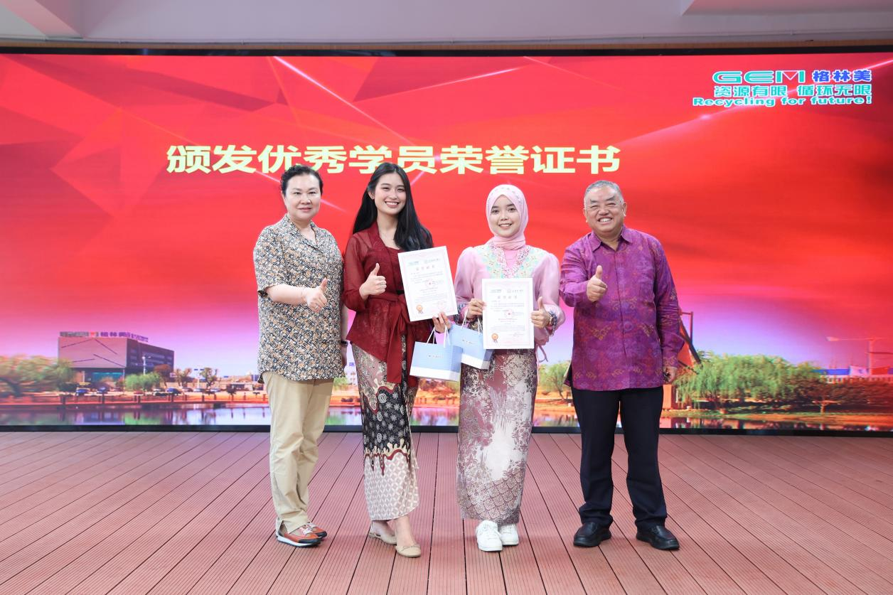 从最初的拼音学习,到复杂的汉字书写,再到流利的对话练习,经过近三个月的“浸泡式”中文学习,28名中文零基础的学员均成功通过结业考试,荣获结业证书。其中,布媞(Santa Laetitia Nusa Putri)和安芮娜(Seli Anriana)凭借优异表现,荣获优秀学员荣誉证书,并作为优秀学员代表上台发言,对格林美提供的沉浸式学习机会表示衷心感谢。第二期中文培训突击营学员的如期优秀结业,再次展示了公司开办的中文培训突击营的中文学习培养模式的巨大成功。