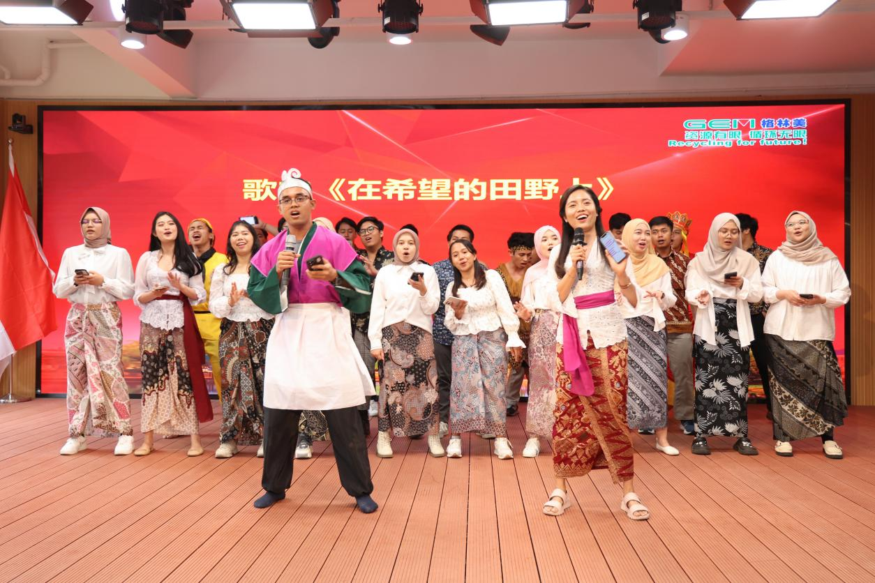 结业典礼后,第二期中文培训班的学员们带来了一场美轮美奂的精彩文化汇报演出。他们用流畅的中文演唱歌曲、朗诵诗歌、演绎话剧,展示印尼悠久的传统舞蹈与中国古代《西游记》里的奇幻故事,不仅充分展示了他们勤学苦练后的中文水平,也呈现了一幅中印尼文化相互交融的美丽画卷。