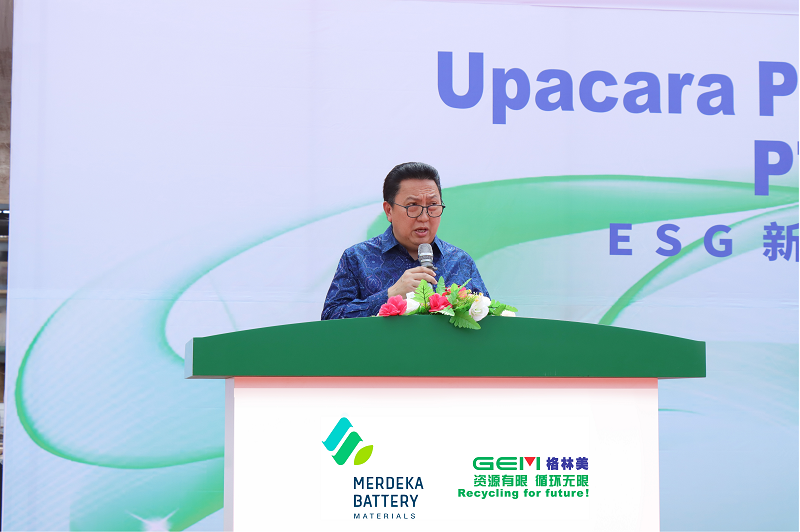 仪式上,Garibaldi Thohir先生发表致辞。他首先感谢许开华教授与格林美团队的辛勤付出与技术支持,这是ESG项目发展如此迅猛的关键因素。他表示,将会持续关注ESG项目在第四季度的顺利启用,期待与各位合作伙伴在全球能源转型背景下,一同成为电动汽车价值链中的领军者!