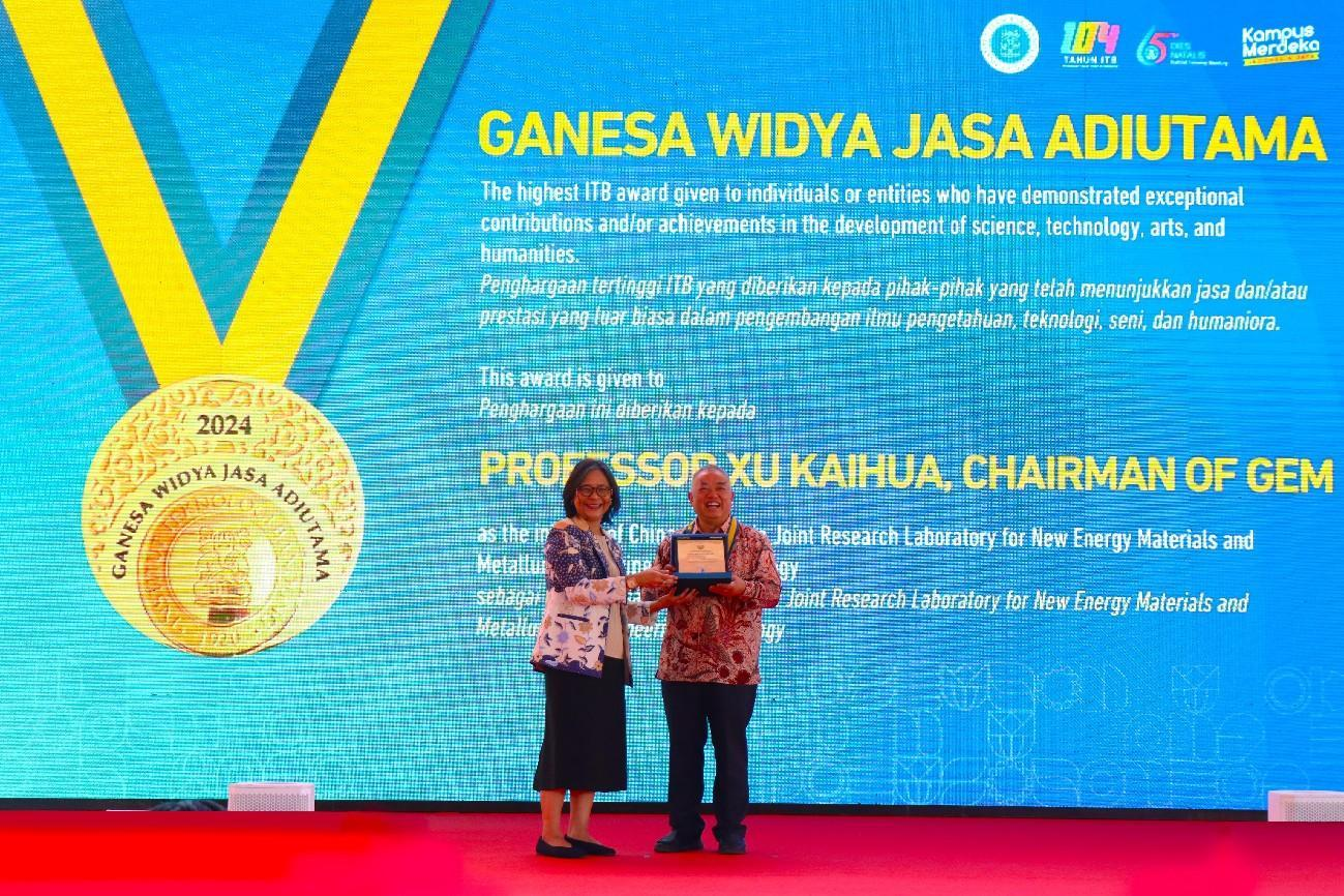 活动上,万隆理工学院校长Prof. Reini Wirahadikusumah, Ph.D为格林美集团董事长许开华教授颁发ITB终身荣誉奖。