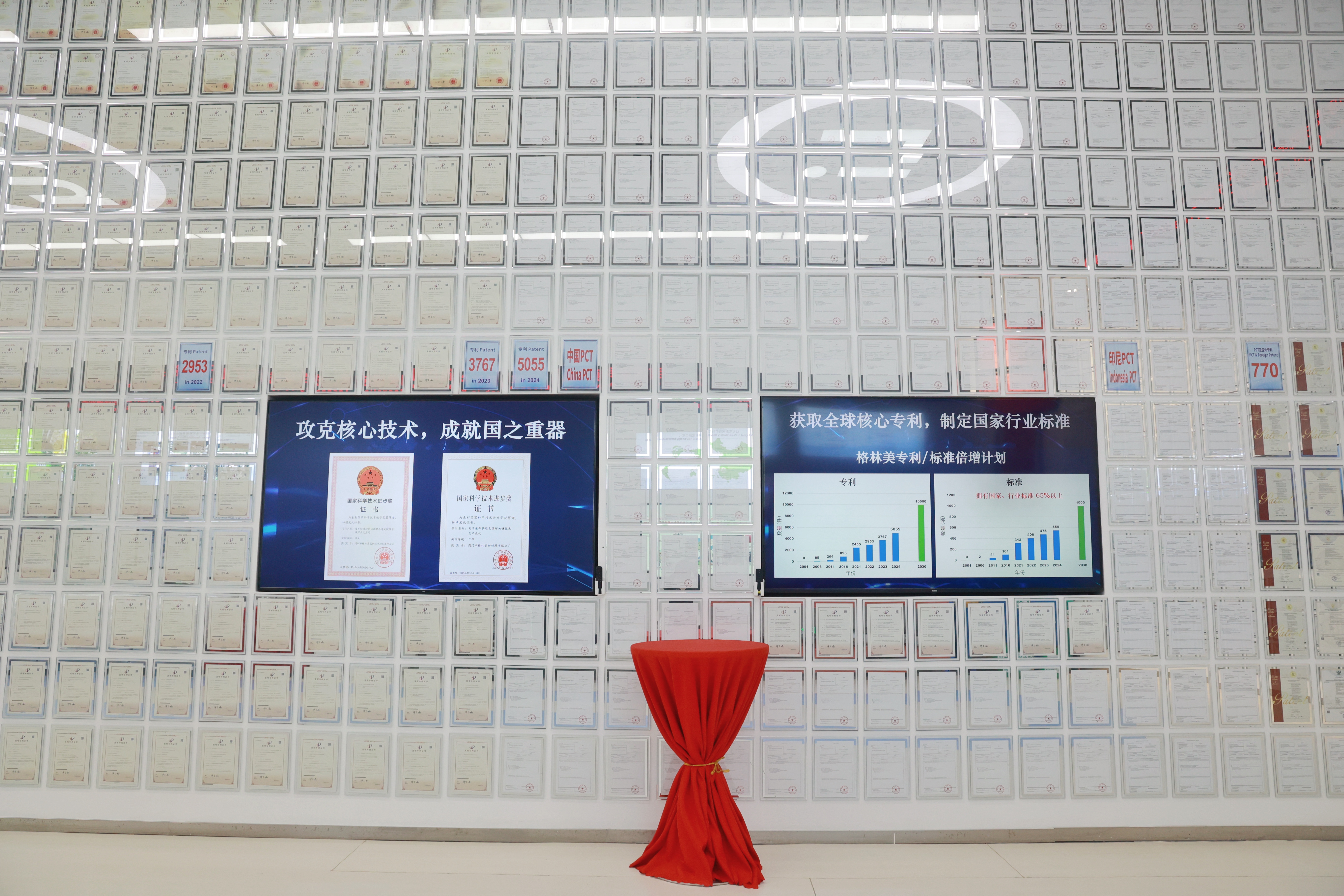 ▲格林美国家循环经济教育示范基地“城市矿山”博物馆“专利墙”