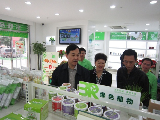 2011年10月20日,湖北省商务厅副厅长马大强一行参观了刚刚开业不久的格林美3R循环消费社区连锁超市南湖店,武汉格林美公司总经理王健热情接待并陪同参观。 马厅长实地一一参观查看了3R店中低碳产品销售区、寄售与交换...