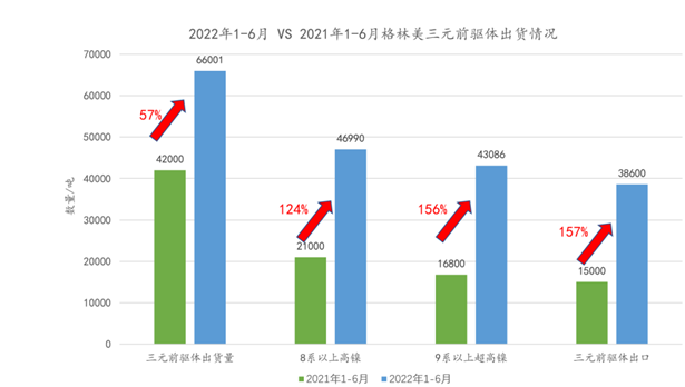 今年上半年,动力电池用三元前驱体材料出货量达到66,001吨,位居世界前二,同比大幅增长57%,贡献营收75.18亿元,同比增长达147.82%。其中,9系超高镍产品出货量43,086吨,占出货总量的近65%,位居世界前列。这标志着格林美公司三元前驱体产品的全面国际化。公司动力电池回收业务上半年实现营收2.57亿元,同比增长368.64 %,回收拆解动力电池8,452吨(1.08GWh),同比增长 146%,动力电池回收跨入万吨级时代。