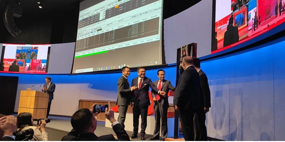 格林美代表分别在深交所、瑞交所敲响格林美GDR上市钟