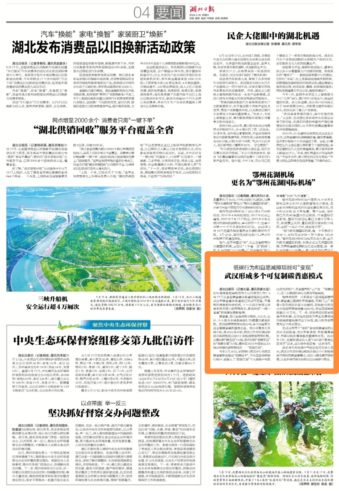 如何将绿色发展转变为全民的自觉行为?5月17日从全省碳普惠体系建设推进会获悉,武汉市碳普惠体系建设已形成可借鉴、可复制的样板和经验模式,下一步湖北省将支持其他地方建立碳普惠体系,推动形成“一城一普惠”的低碳发展新格局。