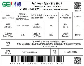 一、同意荆门市格林美新材料有限公司生产“GEM格林美”牌电解镍(电积工艺,Ni99.96)在我所注册,注册产能3万吨,执行标准价。