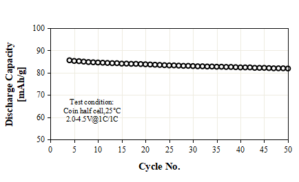 NF-S1产品应用:用于方型或软包电池,扣电4.50V下0.1C放电91.50mAh/g,循环性能:1C/1C,50周≥90%,可用于二轮车及储能。