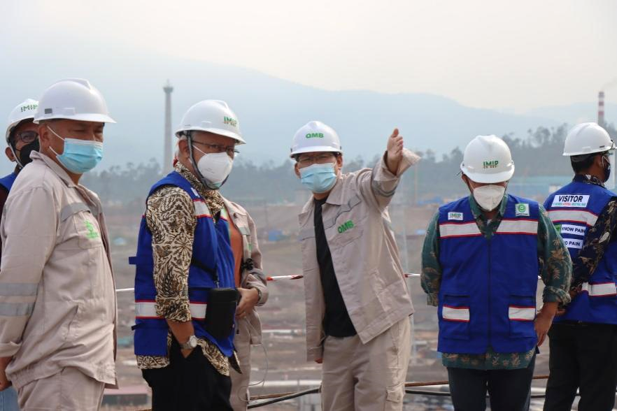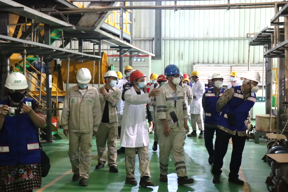 Satryo教授一行首先前往项目现场参观考察,重点考察了青美邦实验中心。焦华总经理简要介绍了青美邦印尼镍资源项目基本情况,许鹏云博士等详细介绍了青美邦实验中心的红土镍矿湿法冶炼中试线以及设施齐全的小试实验室。Satryo教授饶有兴致地询问核心关键设备的相关技术问题,得知项目全部采用格林美自主知识产权的工艺方案时,赞不绝口,并对实验室具备的湿法选冶实验能力和项目全体成员在疫情中加紧施工赶进度的奋斗精神表示赞许。
