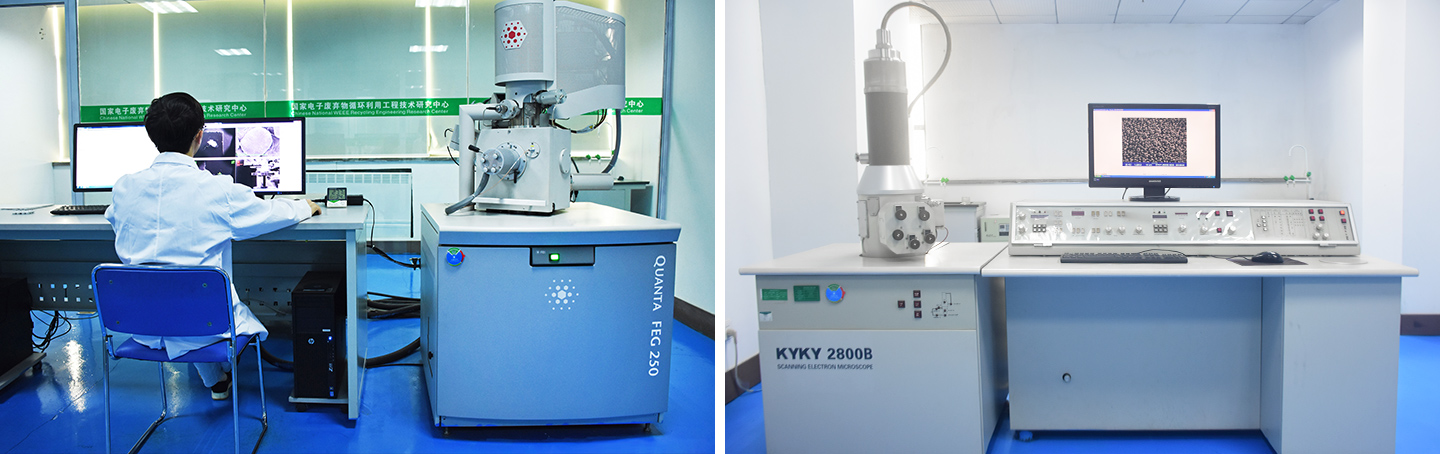 为全力配台国家科技创新双平台及研究院等创新体系,建设有国际先进水平的循环技术实验室,引进50余台(套)大型国际先进仪器,可以对材料成分、粒度、微观结构、表面分子构成以及功能进行全面检测研究,对各种材料进行准确快速地检验,指导物料采购、研究开发和产品生产,打造了废物循环利用与新能源材料领域影响全球、服务国家、支撑行业的公共技术平台。